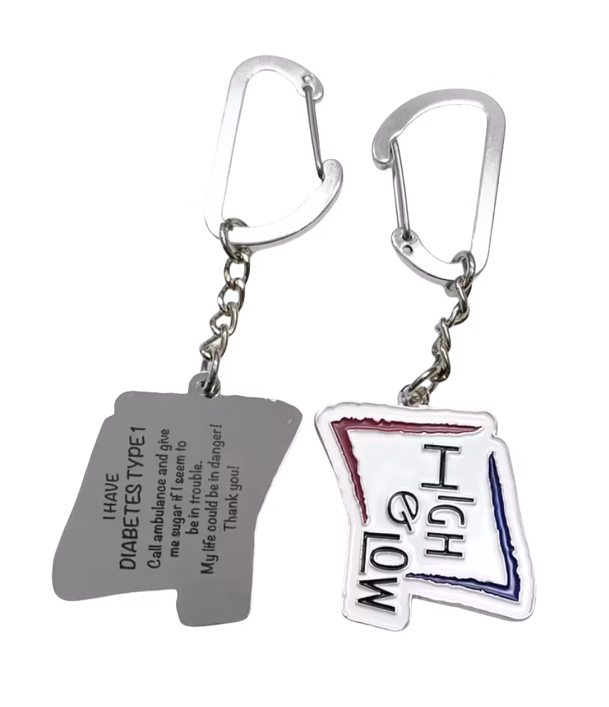 Nyckelring 89 kr I lager. Lägg i korgen Produktbeskrivning Recensioner Trendig nyckelring med diabetesinformation och praktisk hake som gör det lätt att hänga den på väskan eller jackan